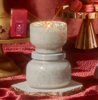 Our most delicious fragrance in our most luxurious collection! The Apple Cider Social Holiday Mercury Signature jar will have you popping open a bottle of cider and enjoying those elegant fall vibes. This mercury pearl etched vessel is paired with cozy notes of crisp apple, cinnamon, juicy pear with grated clove, and fresh nutmeg.