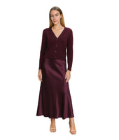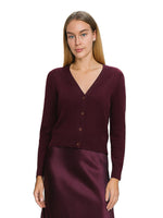 A timeless layer for every wardrobe, this cardigan is crafted in soft, breathable cotton with a clean, feminine silhouette. Featuring a flattering V-neckline, tonal button-down front, and ribbed cuffs and hem, it’s the perfect piece to wear on its own or layered over your favorite tops. The rich burgundy hue transitions seamlessly from workdays to evenings out, making it a versatile essential.