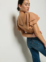 Bring the wow factor effortlessly. Front and back v-neckline, double layer ruffle sleeves, and bra stays (because we thought of everything). This one comes in Optic White.