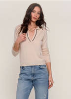 The Citrine Sweater is a super soft, polo-style knit. It features contrast tipped edges and a relaxed fit. We love it paired with denim or dressed up with a wide-leg trouser.
