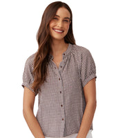 Short Sleeve Raglan Shirt Brown Micro Gingham