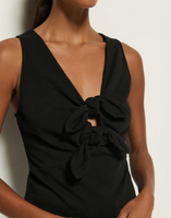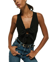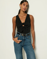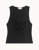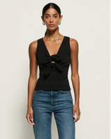 When your going-out top needs some refinement, the Terri Tie Tank has you covered. Made in easy cotton jersey, this form-fitting top features front bow-tie detailing, a flattering v-neckline, and side slit openings for utmost comfort. This one comes in Jet Black.