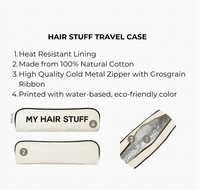 Keep your hair stuff organized when traveling and at home with our heat resistant Hair Stuff Case in cream! This hair tool case is the perfect travel organizing case, made of high quality cotton and durable metal zippers, you can use this case for years to come! With all your hair stuff is in one place, you'll never lose track of anything ever again, whether you're at home or on the go. Happy organizing!