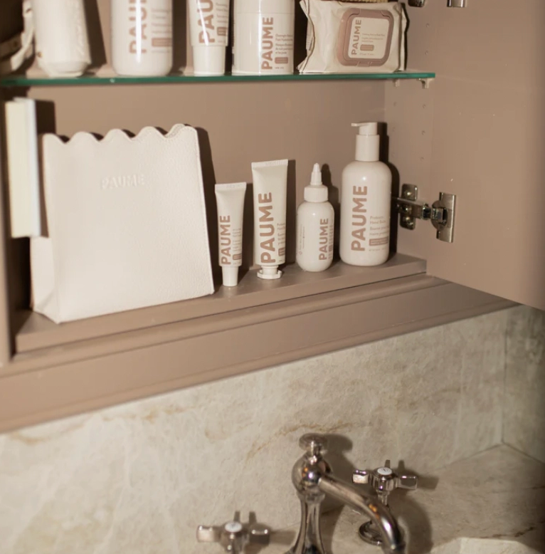 The PAUME Pouch is an elegant vegan leather carryall that keeps your hand care essentials organized. Soft to the touch and structured enough to hold its shape, it brings a touch of everyday luxury to your purse, bathroom, or bedside table.