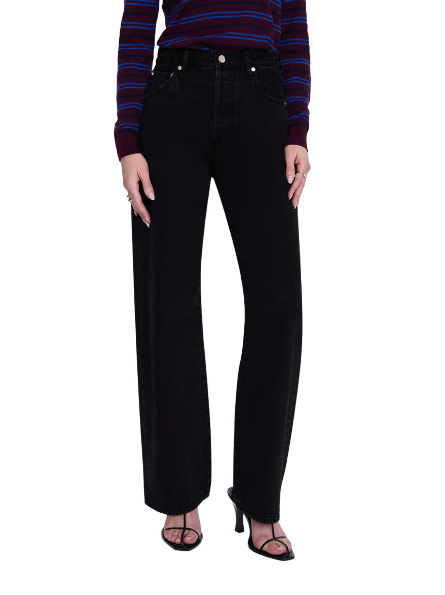 Dark denim, finally done right. Tate sits at a high rise with our signature bowed wide leg silhouette and full-length 32" inseam that creates architectural drama. The subtle curve through the leg adds dimension while the wide opening brings modern proportion to any look. Crafted from 100% cotton non-stretch denim in Midnight Hour, a rich dark wash.