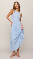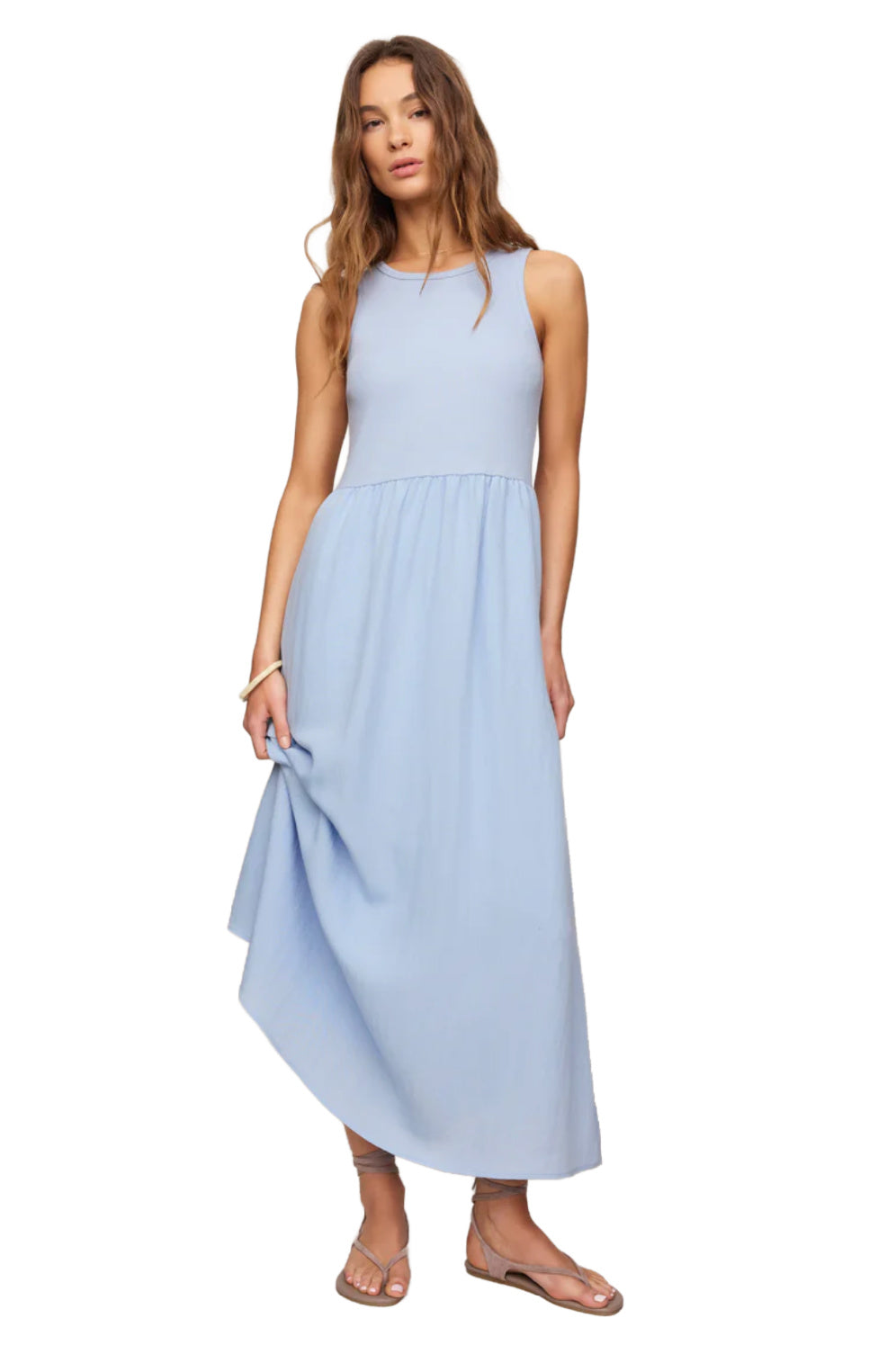 The soft ribbed bodice flatters with a fitted shape, while the lined textured rayon skirt flows down to hit above your ankles. Finished with a high neckline, sleeveless silhouette, and hidden pockets, it’s an elevated everyday dress you can wear all season.