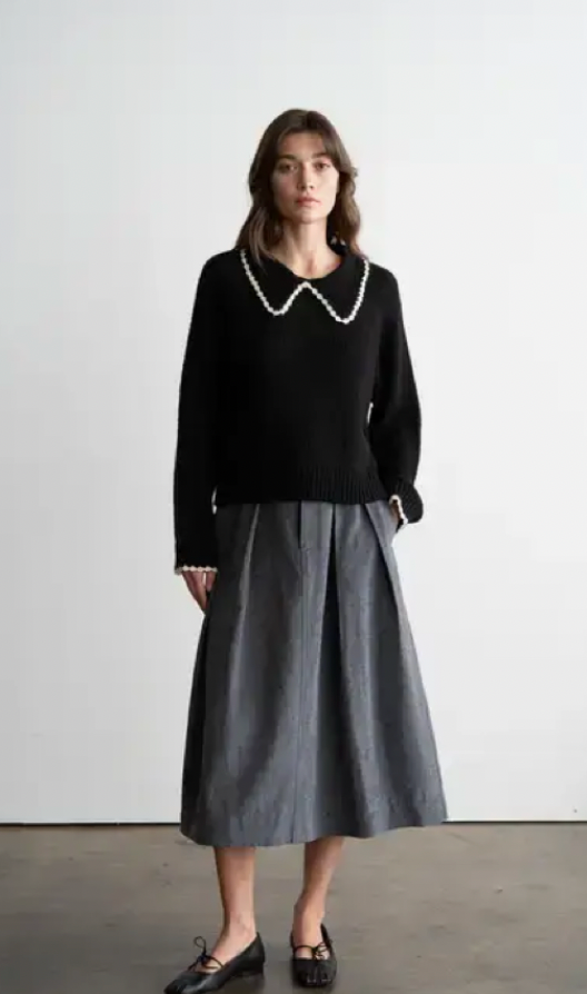 Scalloped Collared Sweater Black
