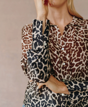 Flowy Wide Collar Button Down Ombre Leopard