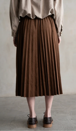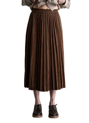 Elastic Waist Pleated Midi Skirt Brown