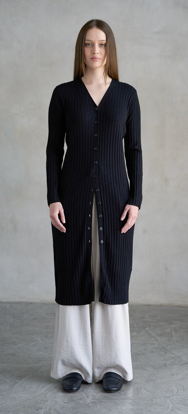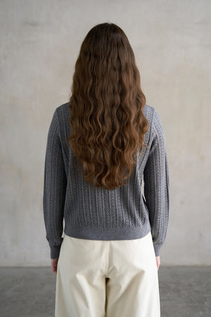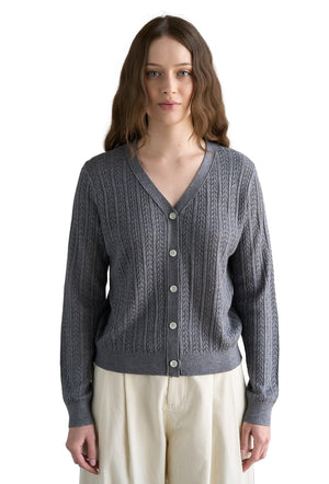 Cable V-Neck Cardigan Charcoal