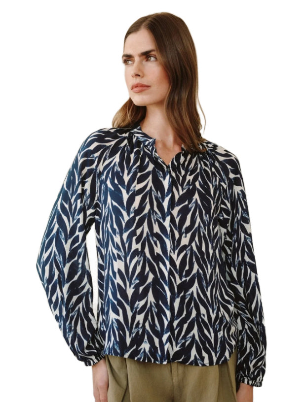 Shirred Raglan Shirt Navy Leaves