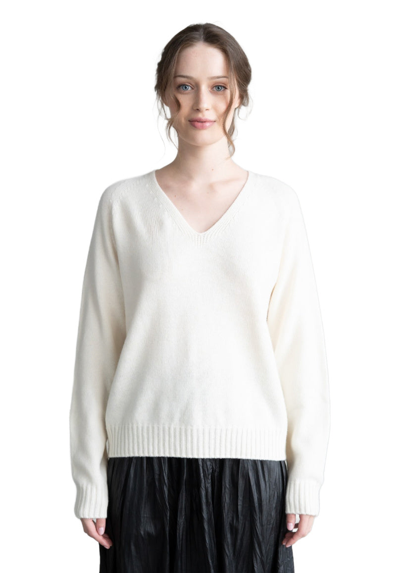 V-Neck Long Sleeve Sweater White