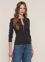 The Daisy Top is made from a pretty, pointelle knit. It has a slim fit, crew neck and a henley button front. It’s a simple piece that you'll be living in.