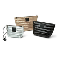 The Travel Trio Organizational Pouches are a triple threat of style, organization, and wow! These three perfectly sized bags keep you organized during everyday adventures to jet-setting around the world. Our signature quilting exterior is lined with silver foil finish providing shape and style to these gems. Perfect for essentials from beauty products to power cords and beyond….even ideal for a chic and sporty clutch on the go!