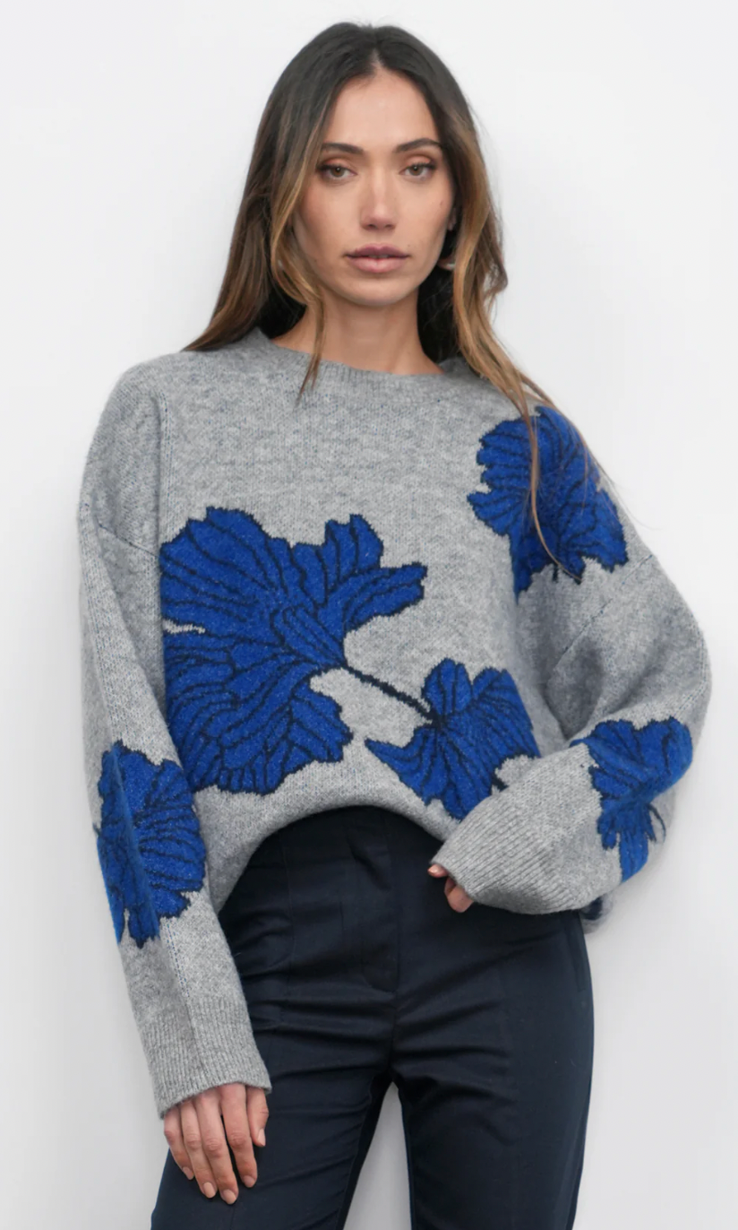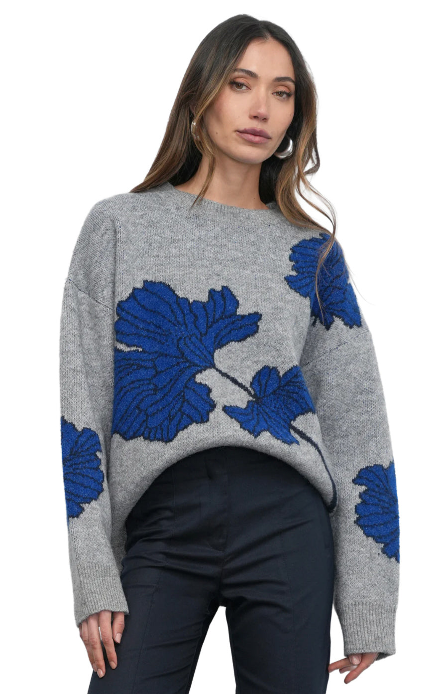 Bennett Intarsia Flower Sweater Grey/Sapphire