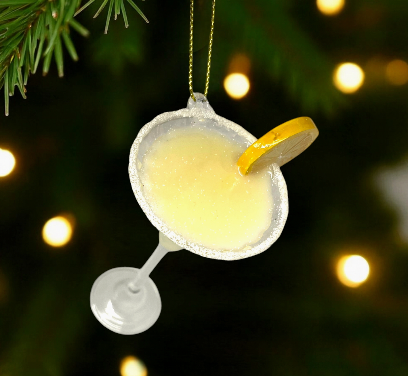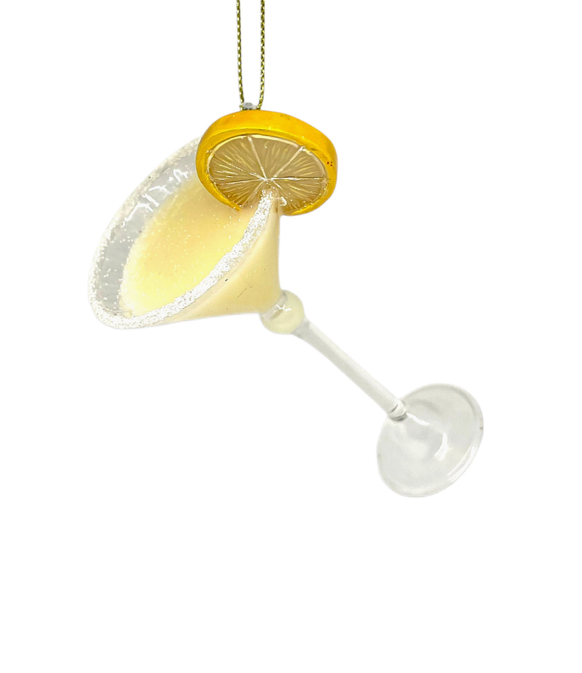 Add a splash of style to your holiday décor with this Lemon Drop Martini glass ornament. Crafted from glass and detailed with a sugared rim, lemon slice garnish, and shimmering golden finish, it’s perfect for cocktail lovers and party hosts alike. Whether displayed on a bar cart or tree, this ornament celebrates the joy of good times and festive cheer.