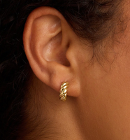 Elevate your style with the Crew Helium Huggies. Featuring a unique twist texture and helium design, these gold plated huggie earrings transition seamlessly from day to night. We love wearing ours alongside gold and diamond studs.
