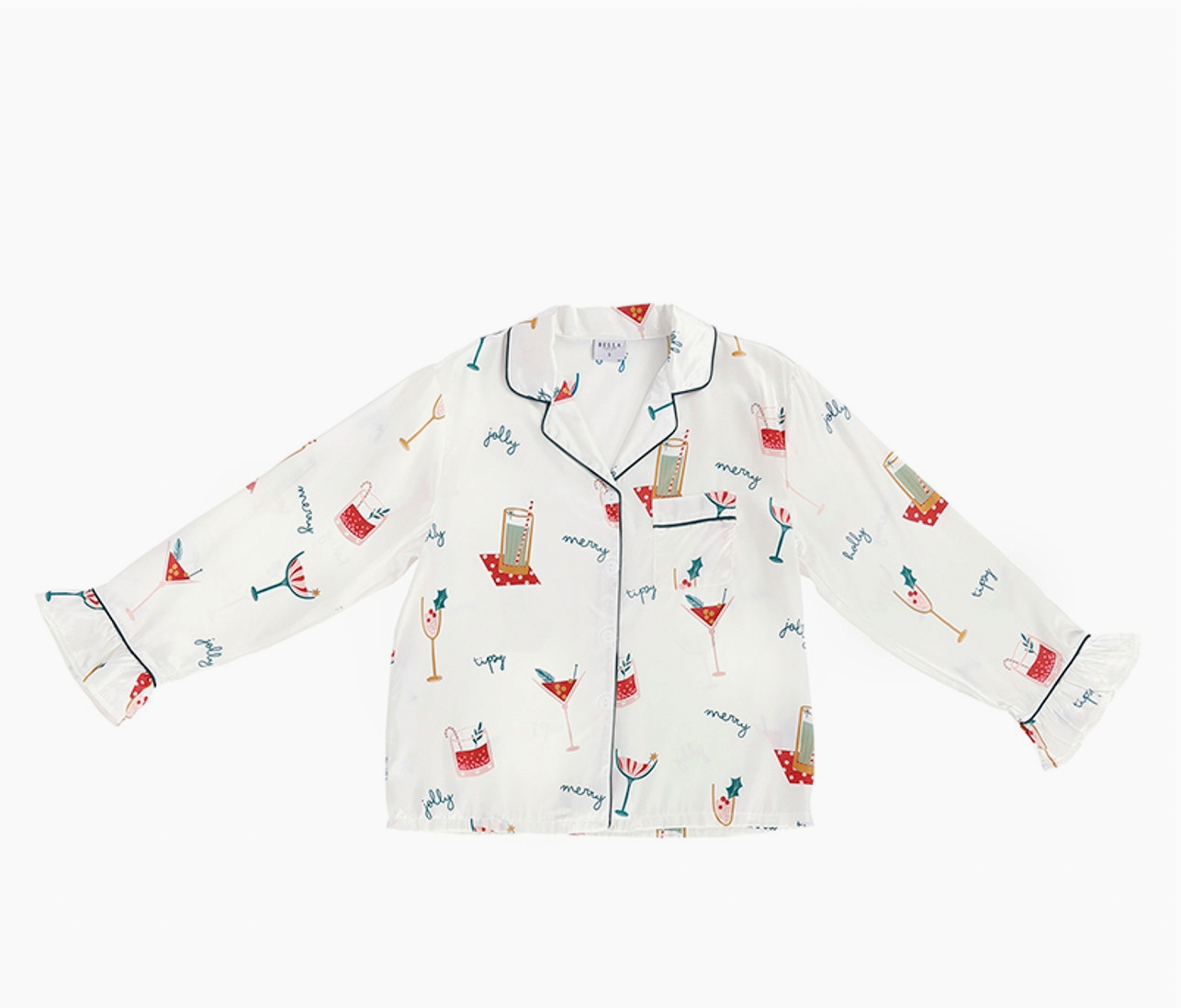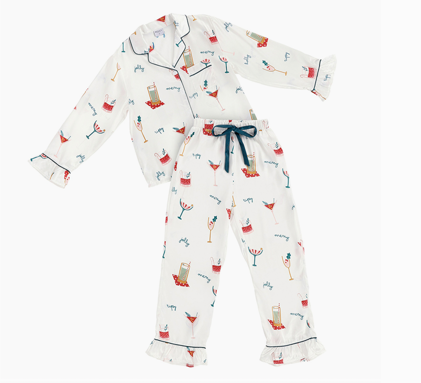 Ruffle PJ Set w/Velvet Tie - Holiday Drinks