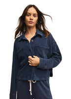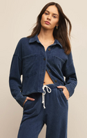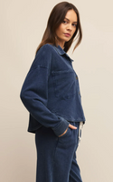 All Day Cropped Knit Denim Jacket Vintage Indigo