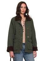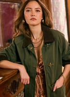 The Charla Jacket is our spin on a chore coat. Made from a washed cotton twill, it features corduroy collar and cuffs, oversized patch pockets, and brass hook & eyes. We love it thrown over all our fall outfits.