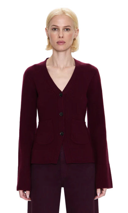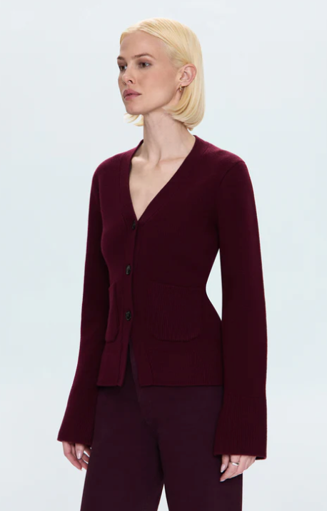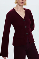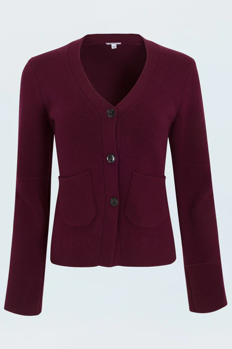 Your perfect layering companion. Aeron features a flattering V-neck silhouette and relaxed fit that feels effortlessly chic. The classic button-front styling brings timeless appeal while the comfortable proportions make it perfect for layering or wearing solo. Crafted from a luxurious blend of soft fabrics that feel incredibly soft against the skin. Claret brings rich sophistication with its deep burgundy tone. If you love the Dani, you'll love this V-neck version that brings the same elevated comfort with a more open neckline.