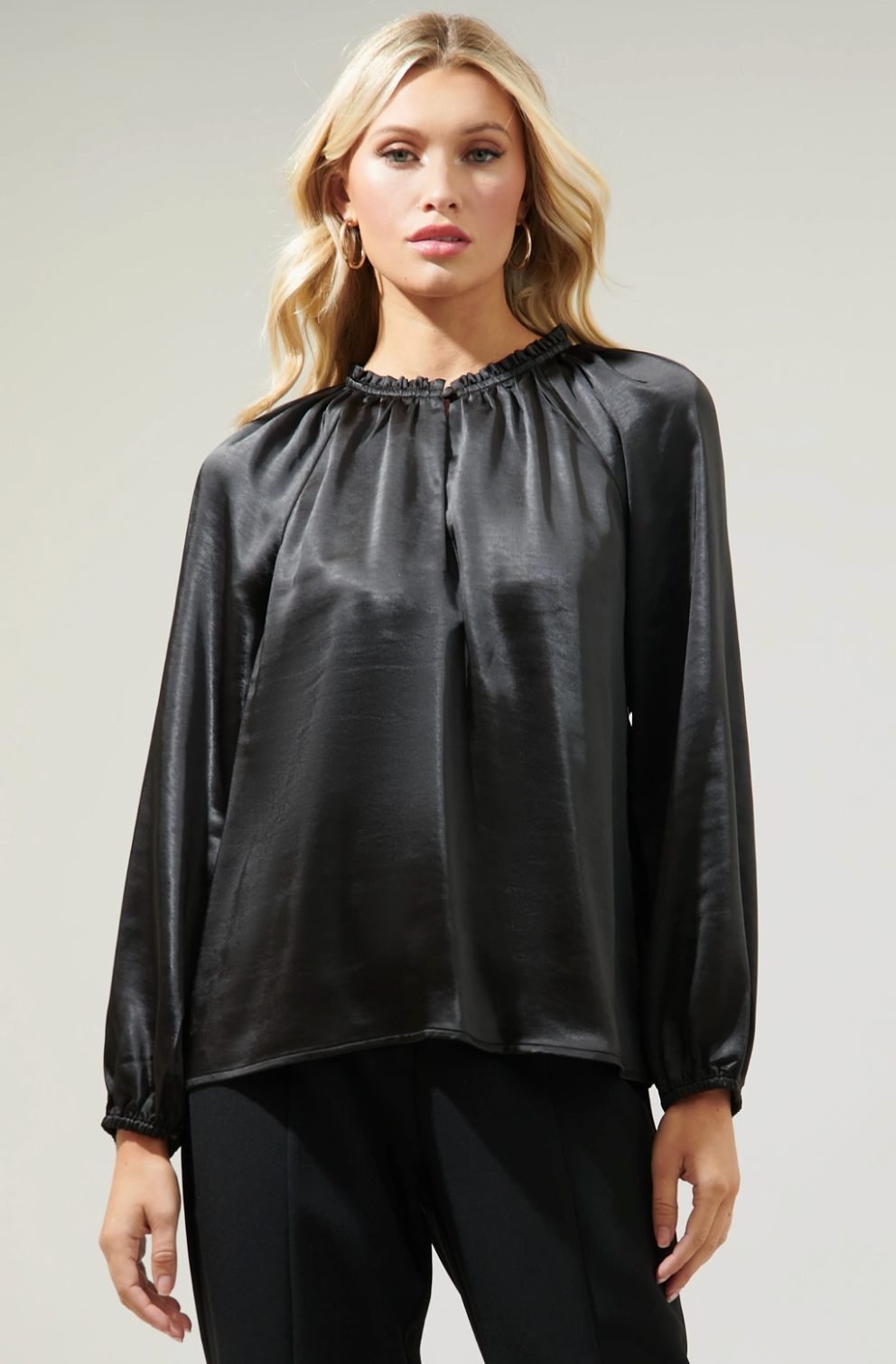 Alcazar Raglan Sleeve Satin Blouse-Black