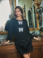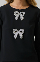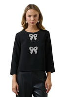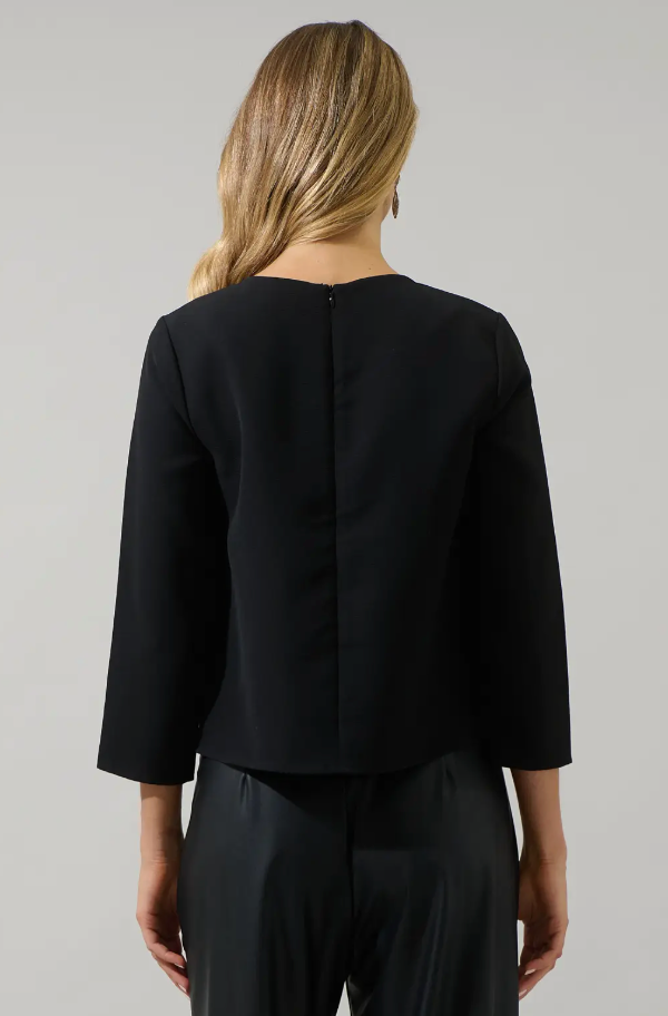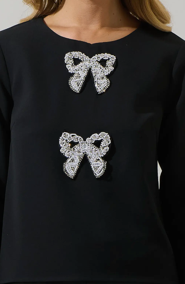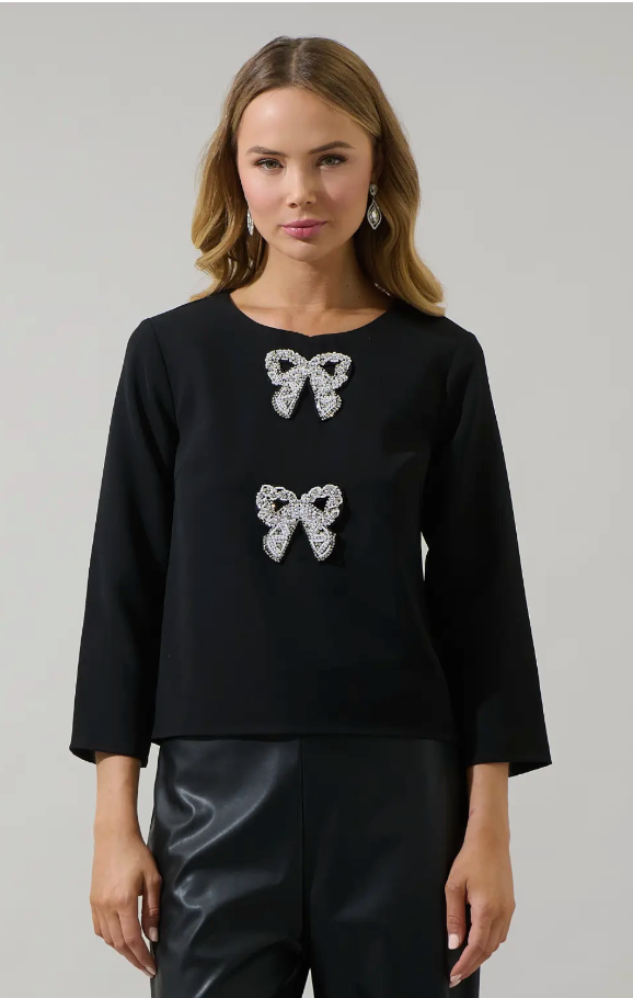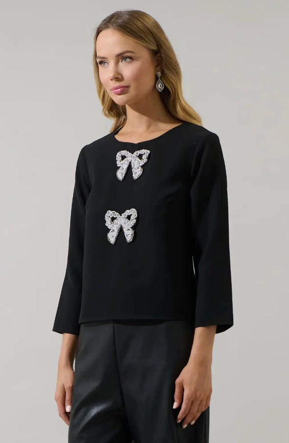 Own every outfit with a top that blends charm and edge. Designed with 3/4 sleeves, two beaded bows at the front, and a back invisible zipper, it’s perfect for standout style. Style with leather pants and block heels or a tailored skirt and crossbody for instant polish.