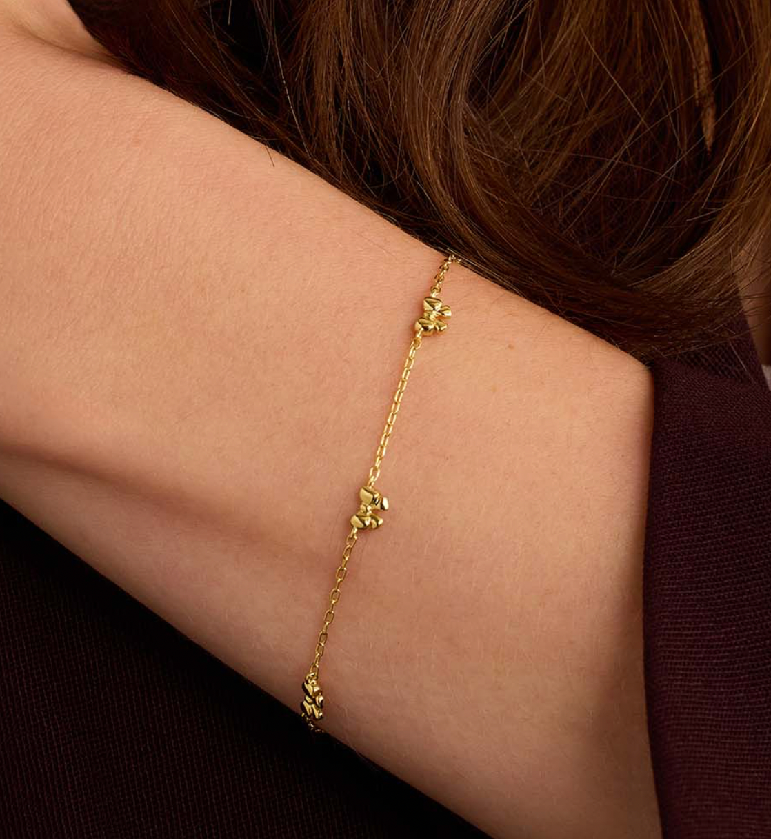 Our elevated take on a sweet trend. Featuring a dainty bow design that's grown up but still girly, this 18k gold plated bracelet adds the perfect touch of charm and youthful appeal to your look.