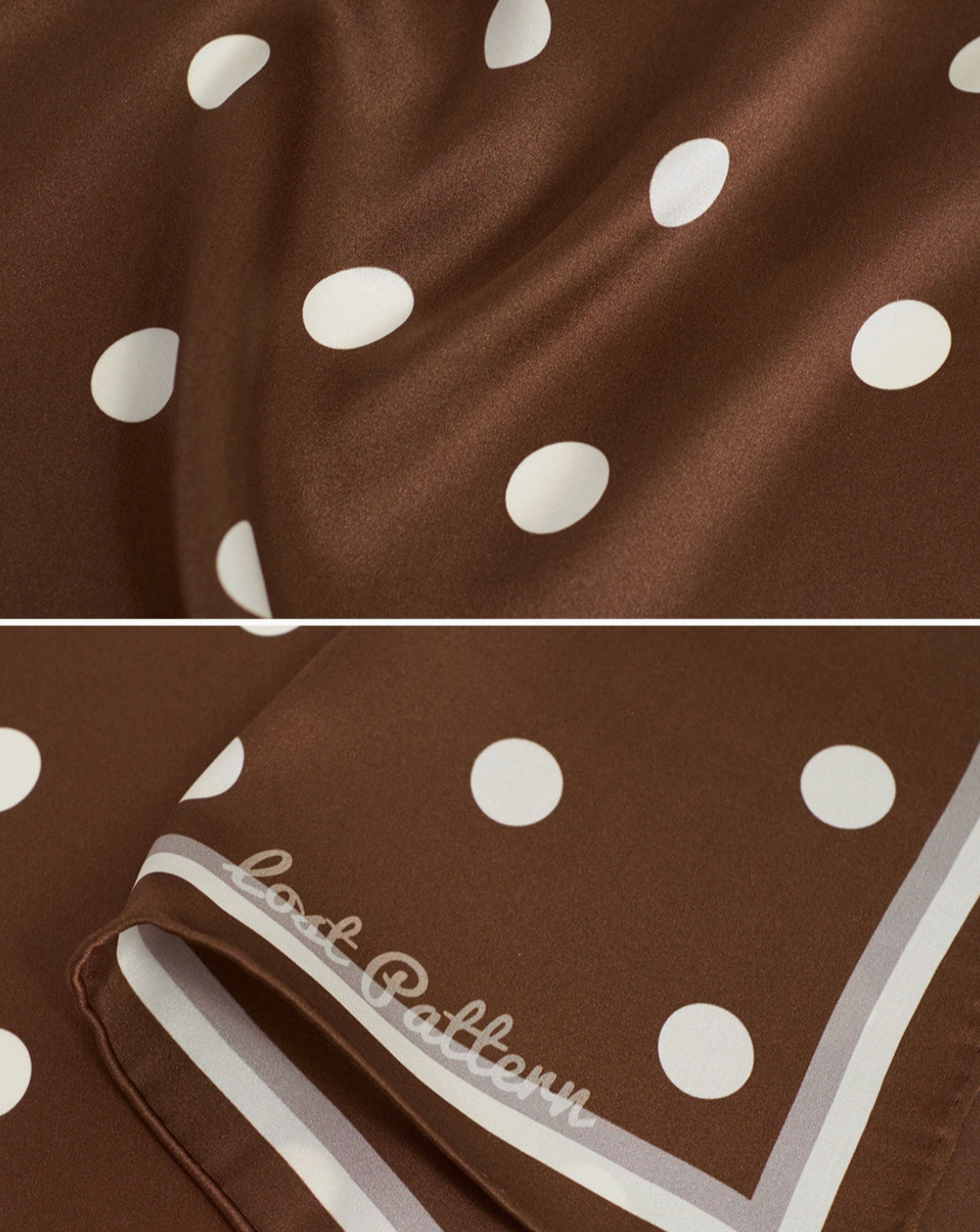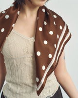 Retro Polka Silk Bandana Scarf- Cafe Au Lait