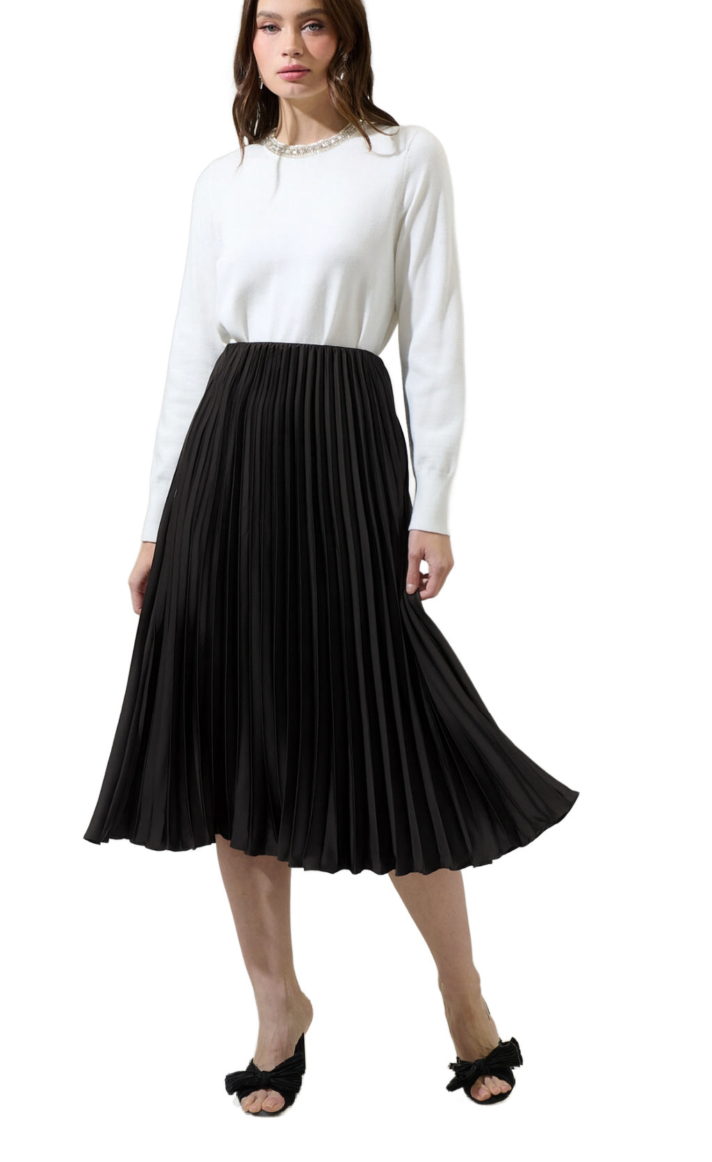 You'll will catch a few people admiring you wearing the Sidney Pleated Maxi Skirt. This high waisted elastic waistband is fully pleated with a loose fit. The ankle length is perfect enough to show off your heels or sandals.