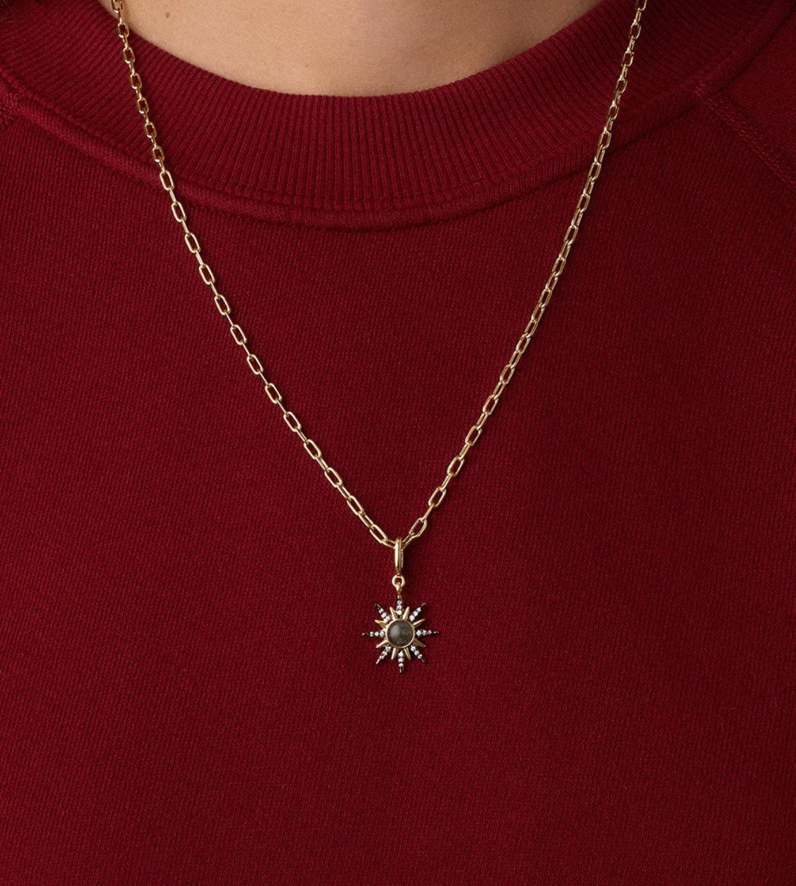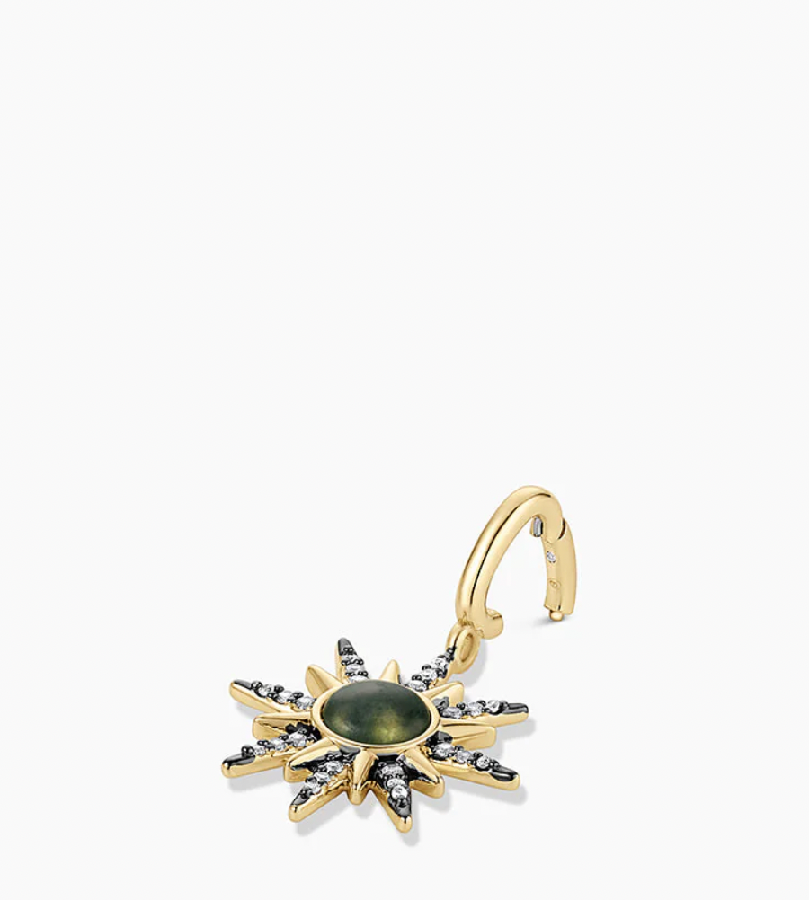 The Vintage Collection combines our signature, playful shapes with intricate, vintage-inspired design details. This charm features genuine black labradorite and shimmering cubic zirconia. Crafted with a simple hinge closure, this 18k gold plated charm quickly and securely attaches to your favorite chain.