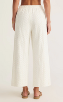 This ankle-length pant is made from our novelty cotton knit eyelet fabric with a soft drawstring waistband and relaxed fit. Fully lined with side seam pockets, it’s a warm-weather staple that blends comfort with on-trend style.