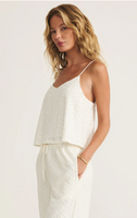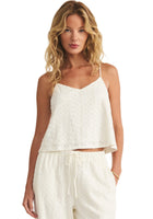Made from 100% cotton novelty eyelet, this lined cropped tank features a relaxed fit and breezy v-neckline. With adjustable spaghetti straps and soft encased elastic at the top edge, it’s the ideal mix of sweet and easy.