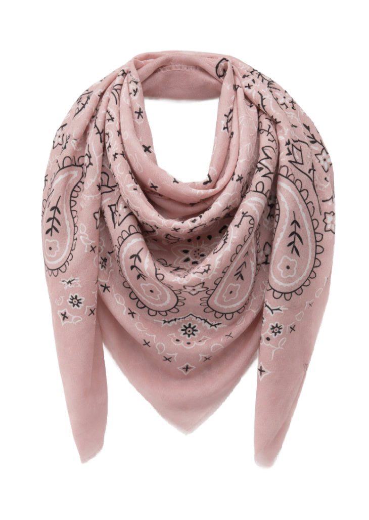 This oversized square scarf features a modern take on the classic bandana motif, crafted in a fine, lightweight weave for effortless drape. Soft and airy, it adds texture and interest without bulk. Easy to style and endlessly versatile, wear it wrapped, draped, or knotted as a standout accessory year-round.