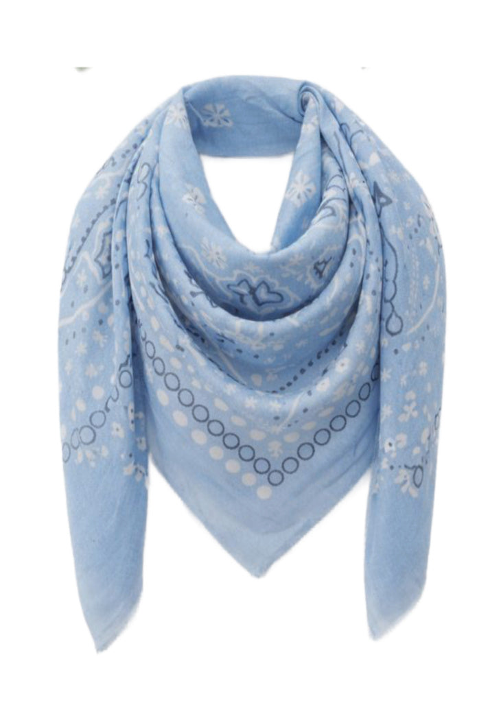 This oversized square scarf features a modern take on the classic bandana motif, crafted in a fine, lightweight weave for effortless drape. Soft and airy, it adds texture and interest without bulk. Easy to style and endlessly versatile, wear it wrapped, draped, or knotted as a standout accessory year-round.