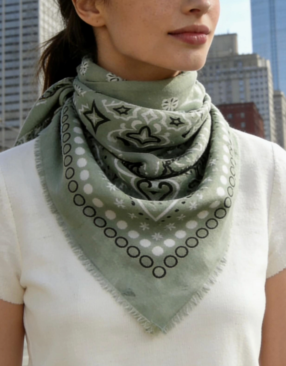 This oversized square scarf features a modern take on the classic bandana motif, crafted in a fine, lightweight weave for effortless drape. Soft and airy, it adds texture and interest without bulk. Easy to style and endlessly versatile, wear it wrapped, draped, or knotted as a standout accessory year-round.