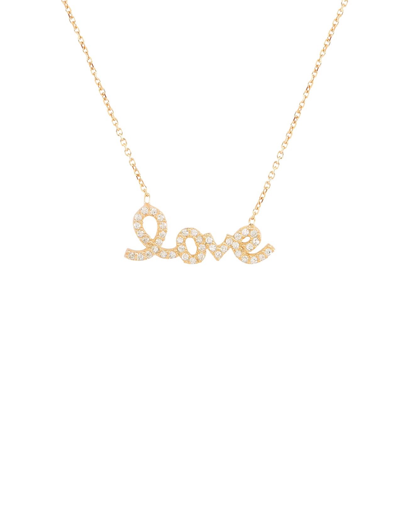 This beautiful necklace features the words "love" written in a charming script font. Wear it as a reminder to spread love wherever you go. Perfect for any outfit and occasion!
