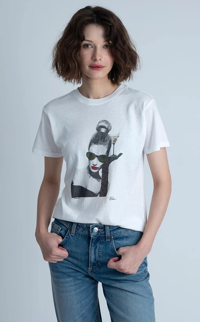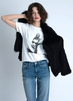 We'd like to introduce you to our Mushie Tee! The name says it all. Constructed from our softest cotton and washed so it feels like it's been in your closet forever. Slightly boxy but also the perfect length to tuck into your jeans. My husband and I call each other Mushie, we love to stay in and watch TV and we love to go out on a date night, just like your new tee.….. I think it's the perfect wearable canvas for my art.