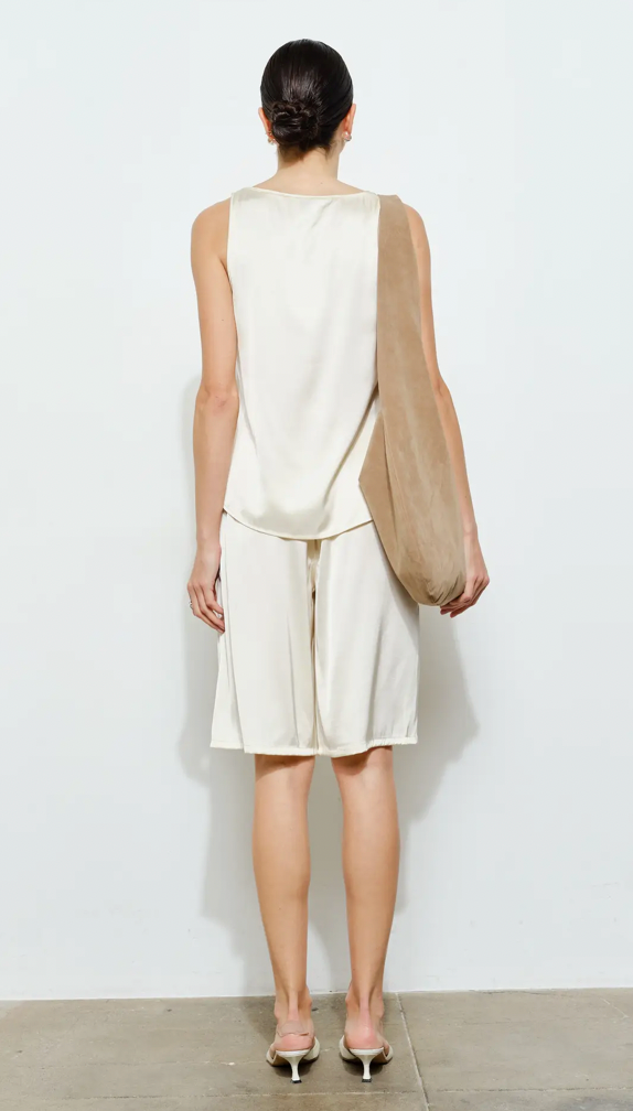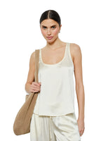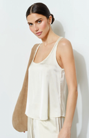 An essential wardrobe staple crafted from smooth satin fabric. This classic fit tank features a flattering scoop neckline and comfortable shoulder straps for effortless layering or wearing alone.