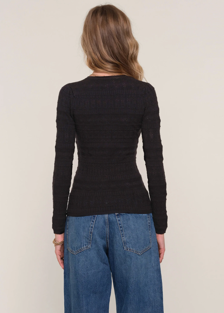 The Daisy Top is made from a pretty, pointelle knit. It has a slim fit, crew neck and a henley button front. It’s a simple piece that you'll be living in.