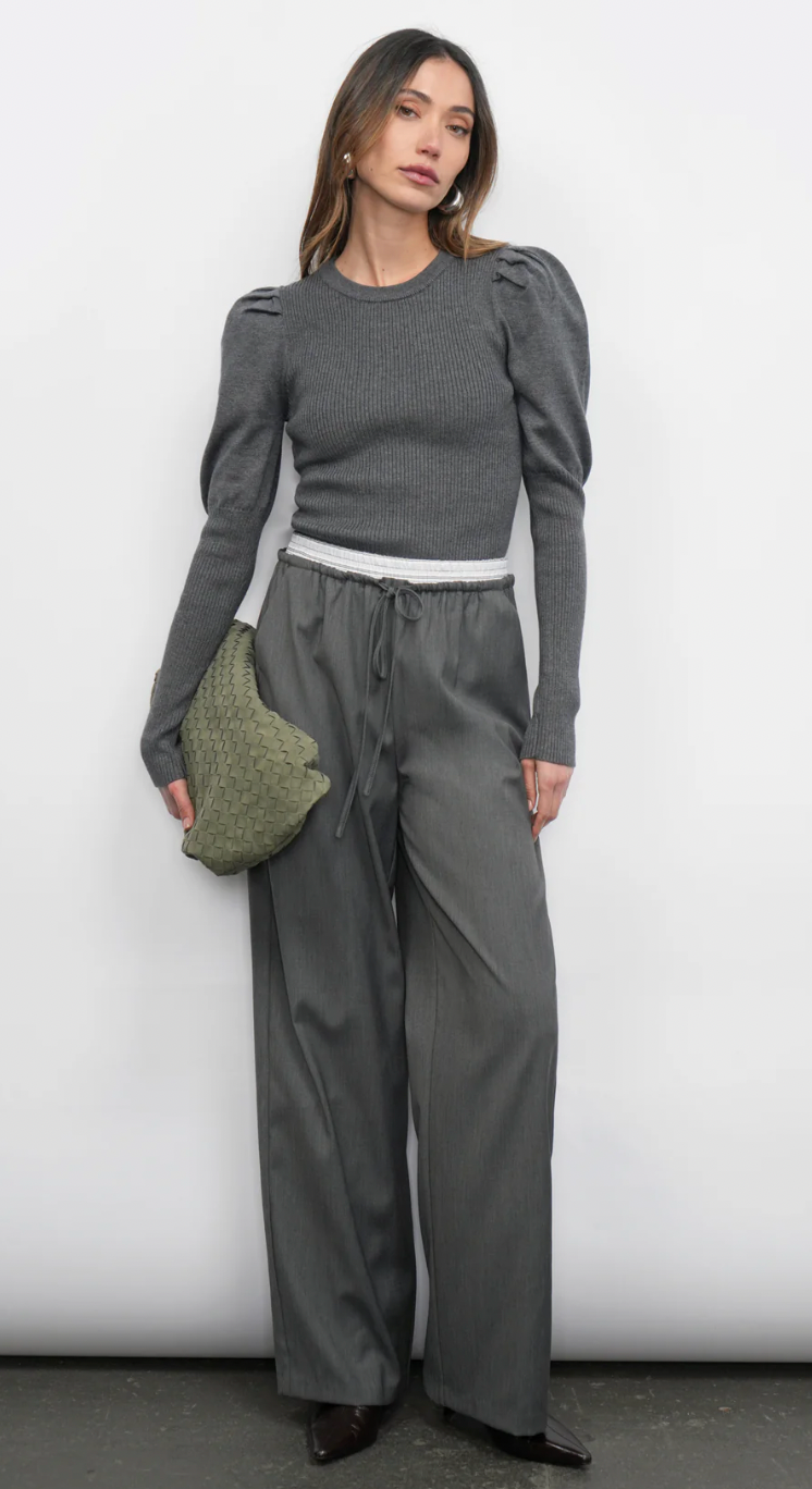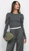 Renoa Puff Sleeve Ribbed Knit Top Charcoal