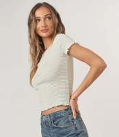 The Camille Striped Pointelle Boatneck Tee features playful bright stripes and a breezy pointelle fabric for that perfect summer vibe. Merrow hems on the sleeves and bottom hem add a subtle, stylish touch, while the baby tee fit gives it that perfect, flattering silhouette.