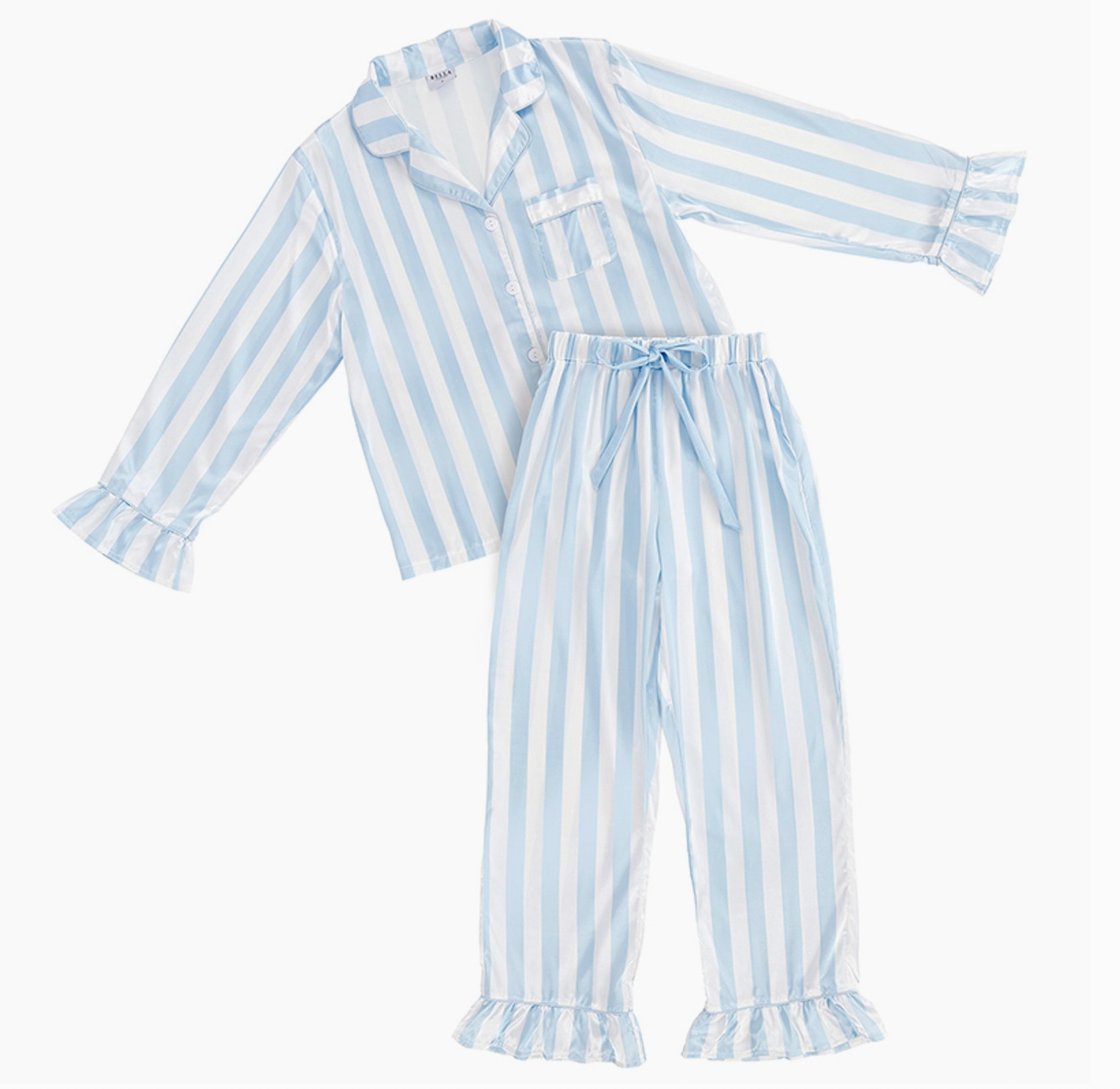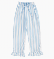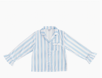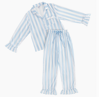 Ruffle PJ Set w/Velvet Tie- Blue Stripe
