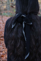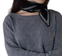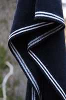 A timeless classic, and a cashmere masterpiece. The spindle-shaped scarf is perfect for wearing in the loved french knot style. The ebony black colour universally matches most outfits and occasions, and the grey highlights add a point of interest to the scarf. So many people love this scarf, and we’re sure you will too.