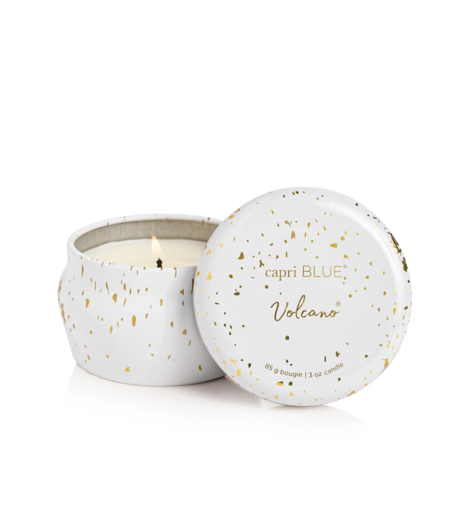 Sparkle and shine with the Volcano Glimmer Mini Tin! Its stunning winter white and gold finish paired with iconic tropical fruits and sugared citrus notes with a touch of holiday to any space.