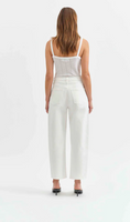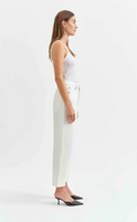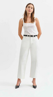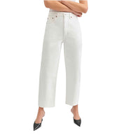 The Westward in Swan is a high rise jean with a trending barrel leg silhouette. Featuring a cinched waist, bowed leg, and slightly tapered ankle against a crisp white wash, this jean is as versatile as it is flattering.